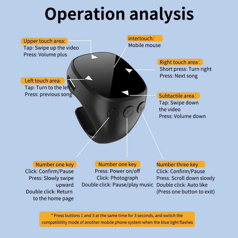 Fingertip Bluetooth Remote Control – Video, Scrolling & Page Turning