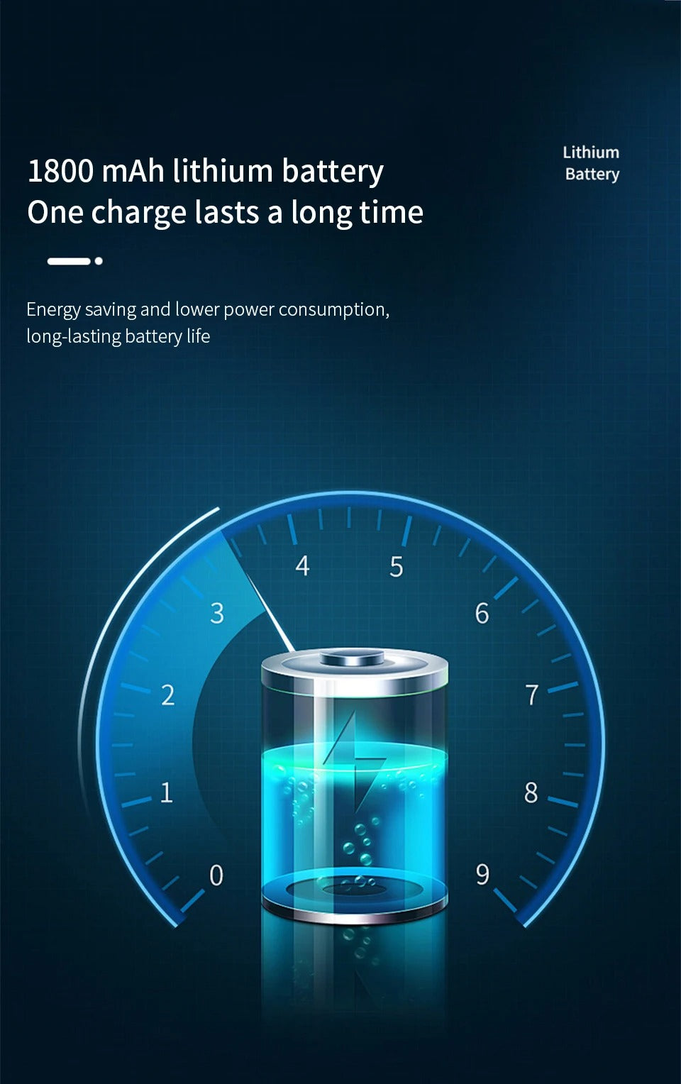 • Rechargeable & Cordless: Built-in 1200mAh lithium battery for long-lasting, hassle-free wireless use.