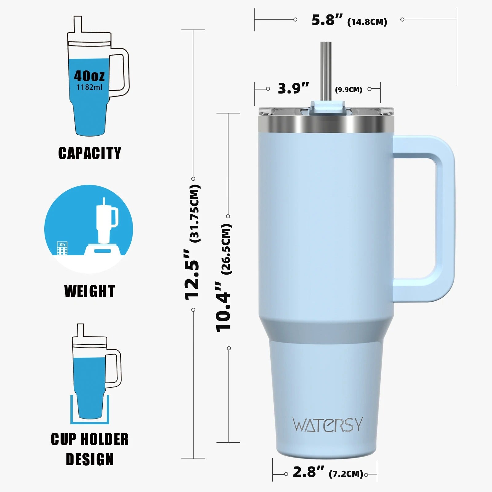 Watersy 40oz/30oz Stainless Steel Insulated Tumbler – Leakproof & Travel-Ready